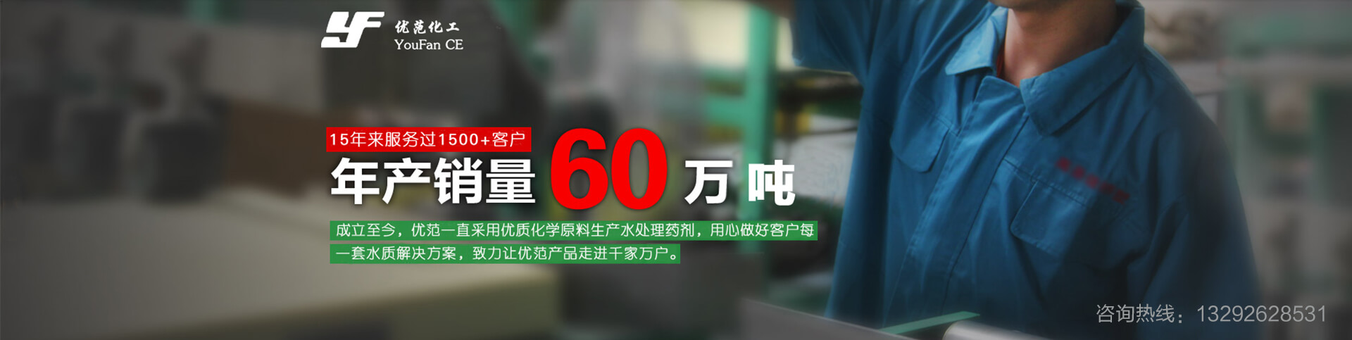 始于2005年,資質(zhì)健全,諸多榮譽(yù),15年專業(yè)水處理藥劑研發(fā)生產(chǎn)商。專注于對阻垢劑、殺菌滅藻劑、反滲透膜阻垢劑、速效除垢劑、清灰劑、污水處理藥劑等多種水處理藥劑的科研、設(shè)計(jì)、生產(chǎn)、銷售及售后服務(wù)。擁有現(xiàn)代化生產(chǎn)車間及高精度的水質(zhì)檢測設(shè)備,鑄造年產(chǎn)量60萬噸的超強(qiáng)生產(chǎn)力,可提供藥劑種類超過200種。從產(chǎn)品到售后,優(yōu)范環(huán)保科技提供專業(yè)一站式服務(wù),創(chuàng)百萬用戶認(rèn)可的好品質(zhì)!